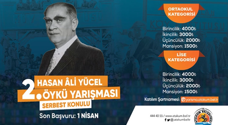 Samsun'da, Atakum Belediye Başkanı Serhat Türkel’in öncülüğünde, geçen yıl ilki düzenlenen Hasan Ali Yücel Öykü Yarışması’nın ikincisi için başvurular başladı. Samsun sınırları içerisindeki okullarda ortaokul ve lise düzeyinde öğrenim gören öğrencilerin katılabileceği yarışma için, son başvuru tarihi 1 Nisan Çarşamba günü olarak açıklandı.