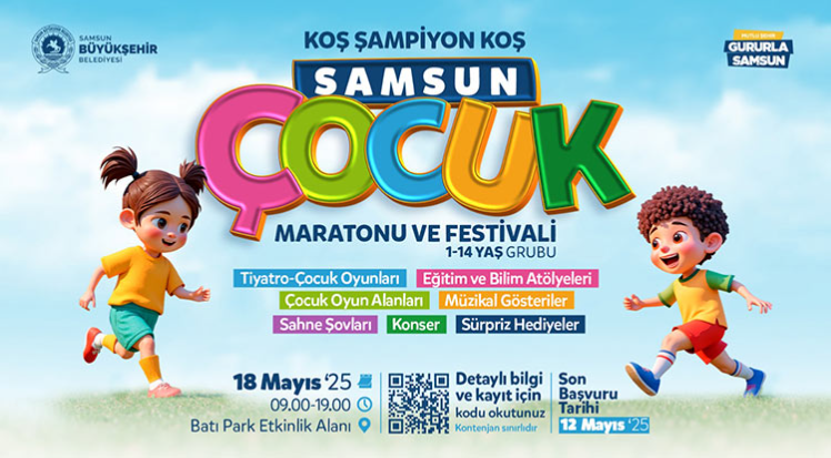 Samsun Büyükşehir Belediyesi tarafından düzenlenecek Çocuk Maratonu Festivali ve Aydilge konseri ile Samsunlular eğlence ve keyif dolu pazar günü yaşayacak. Çocuk Maratonu Festivali 18 Mayıs Pazar günü 09.00’da, Aydilge konseri ise aynı gün 19.00’da Batı Park etkinlik alanında başlayacak.