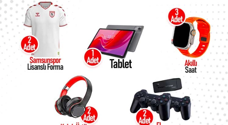 Canik Belediye Başkanı İbrahim Sandıkçı ve Canik Belediyesi sosyal medya hesapları üzerinden katılım sağlanabilen çekiliş programının sonuçları 30 Ekim 2025 tarihinde açıklanacak. 1 adet tablet, 2 adet Samsunspor Lisanslı forma, 3 adet akıllı saat, 2 adet kulak üstü bluetooth kulaklık ve 2 adet el oyun konsolu olmak üzere toplam 10 hediyenin sahibini bulacağı çekiliş programına, 29 Ekim 2025 saat 23.59'a kadar başvuru gerçekleştirilebilecek.
