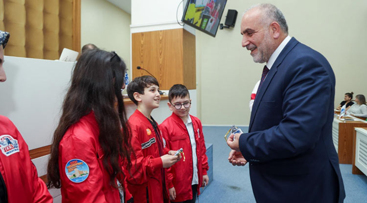 Canik Belediye Başkanı İbrahim Sandıkçı, TEKNOFEST KKTC'de En İyi Sunum Ödülü'nün sahibi olan Canik Özdemir Bayraktar Keşif Kampüsü öğrencilerini Canik Belediye Meclisi'nde ağırladı.