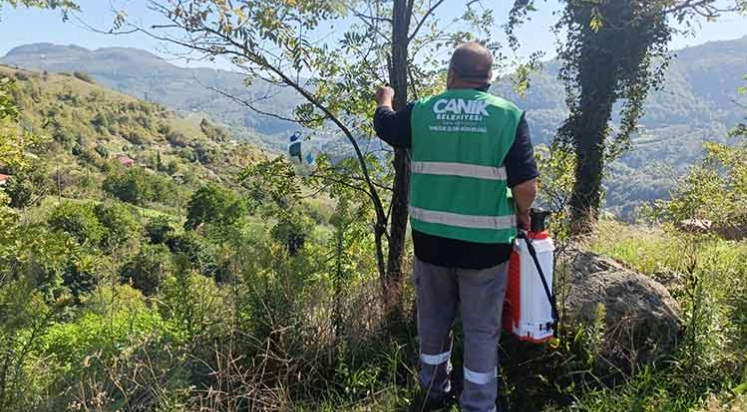 Canik Belediyesi, kahverengi kokarca böceğine karşı ilaçlama çalışmalarına yoğun bir şekilde devam ediyor.