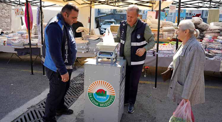 İlkadım Belediyesi, semt pazarlarına yönelik tartı uygulaması başlattı. Vatandaşlar, pazardan aldıkları ürünleri belediye tartısında tartarak gerçek gramajını görebilecek.
