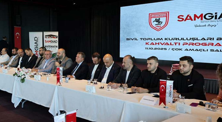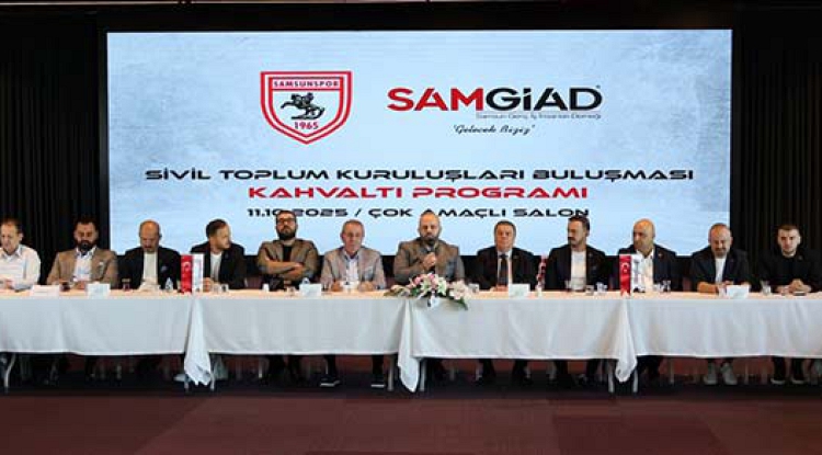 Samsunspor Kulübü ile sivil toplum kuruluşlarının buluşmalarının ikincisi, Samsun Genç İş İnsanları Derneği (SAMGİAD) ev sahipliğinde, Ömer Halisdemir Çok Amaçlı Salon'da gerçekleşti. Kahvaltı programına Samsun Ticaret ve Sanayi Odası Başkanı Salih Zeki Murzioğlu, Samsunspor Başkan Vekili Veysel Bilen ile yönetim kurulu üyeleri Fazlıhan Carus, Aslı Moral Ergin, Onur Öztekin, Tuncay Bulut, Volkan Erdil, Hakan Murat Erkan, Cemil Şahin, Elif Eser Acarel, Giray Şen ve Esat Kasap, ASRİAD, ASKON, SAMSİAD, MÜSİAD, Bafra Genç İş İnsanları Derneği, SAMİKAD, Samsun Genç Girişim ve Yönetişim Derneği, Genç ASKON ve Genç MÜSİAD yönetici ve temsilcileri katıldı.