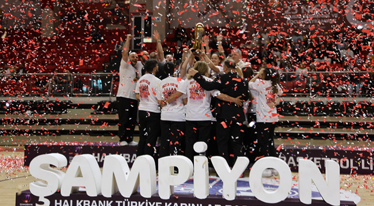 Büyük bir coşkunun yaşandığı törende teknik ekip ve oyuncular, şampiyonluk kupasını TBF yetkililerinin elinden alırken, salonda şampiyonluk şarkıları yankılandı.